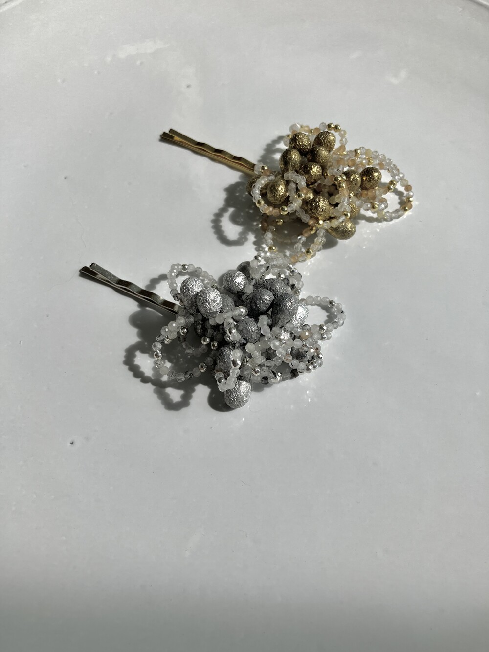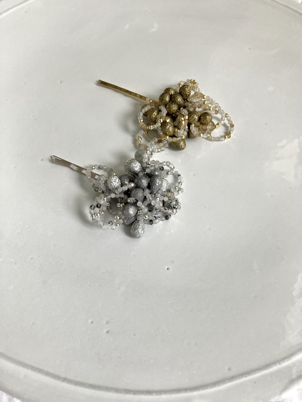 *비즈는 전체적으로 실버, 골드 빛을 띄었으나 입고시기에 따라 발색이 밝고 어두운 정도가 믹스되어 있거나 통일되어 있습니다. 매끄럽지 않은 표면이 있을 수 있습니다. 이 부분은 불량 사유가 되지 않습니다. 이 점을 충분히 이해하시고 구매해 주시길 바랍니다.
