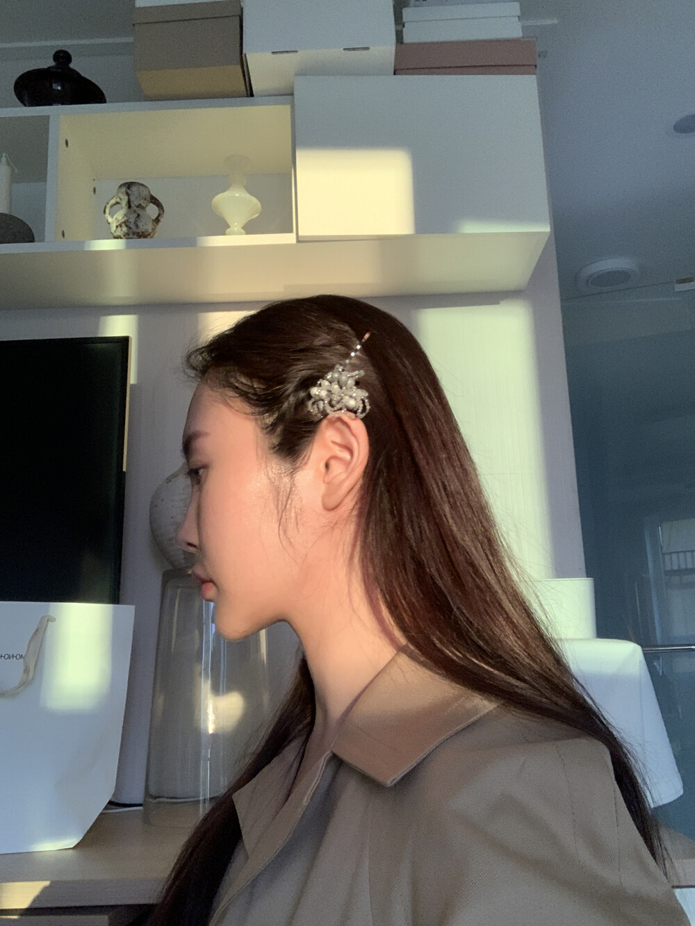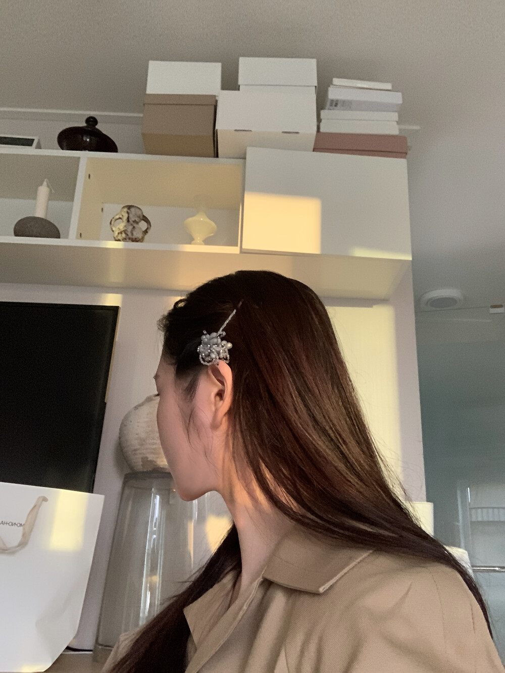 - 소재 : Natural gemstone, Bead, Rhodium - 팬던트 크기 : 50mm~60mm - 길이 : 헤어핀 550mm 팬던트 포함 총 길이 약 700mm