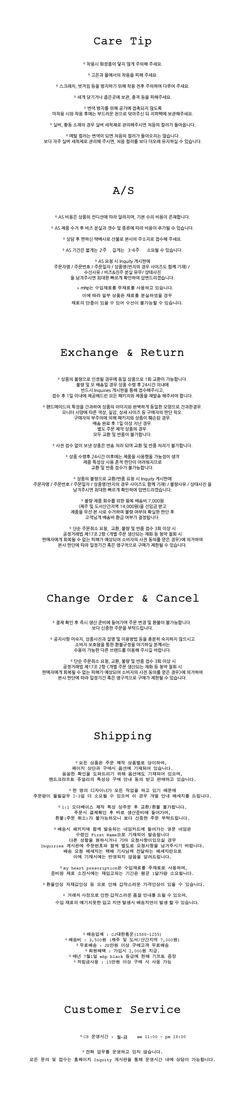 배송 및 브랜드 이용관련 자세한 사항은 Customer Service 게시글에서 확인이 가능합니다. 이 부분을 숙지하지 않으시고 발생하는 모든 불이익은 책임지지 않습니다.