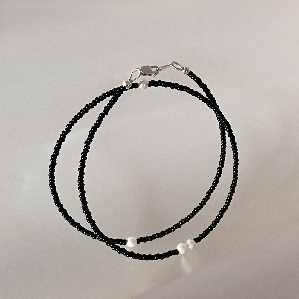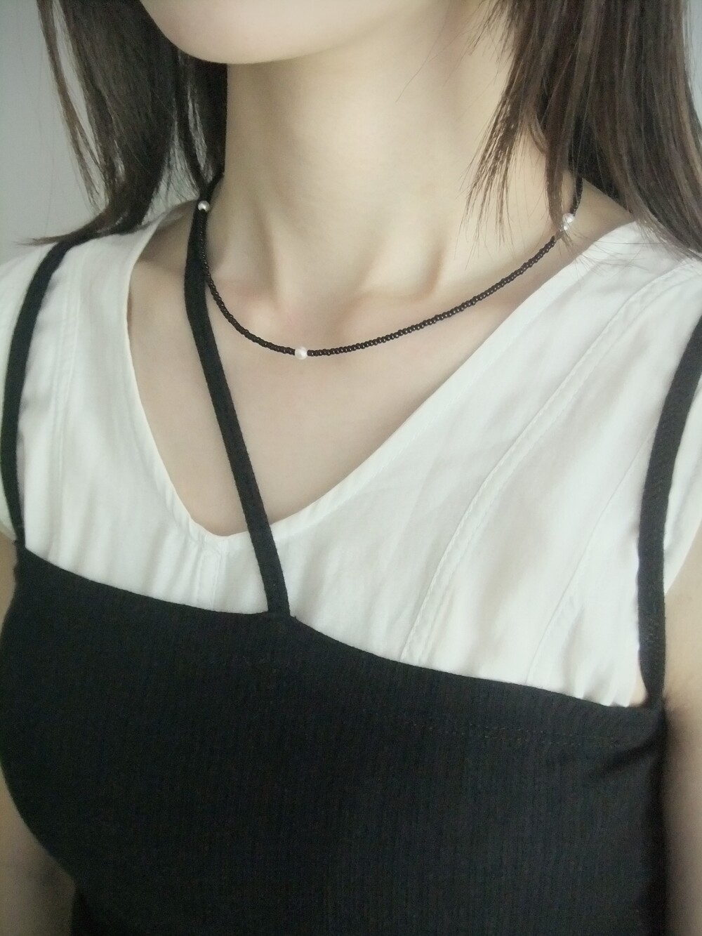 - 소재 : Glass bead, Nuclear Paerl, Sterling Silver - 두께 : 2mm (진주 4mm) - 길이 : 클래습 부분 포함 약 44.5cm (0.1-0.5cm 차이 있을 수 있음)