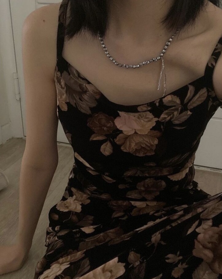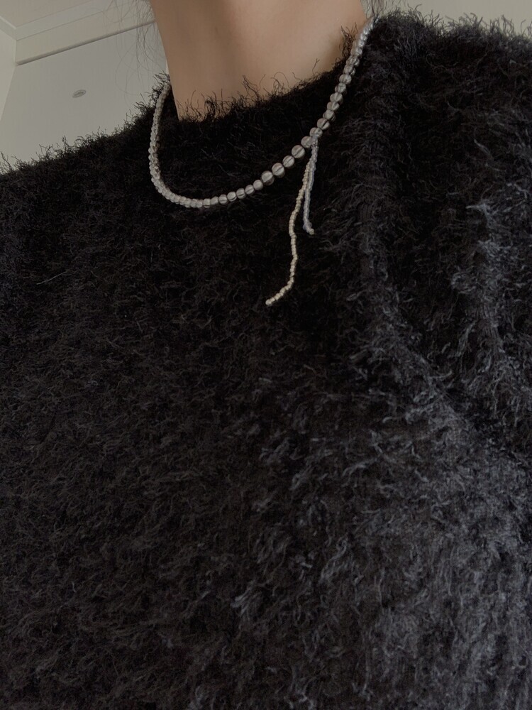 - 소재 : acrylic pearl, beads, spangle, silver, brass, thread - 크기 : 진주 약 4mm-6mm / 비즈 약 2mm - 길이 : 네크리스 - 클리프 부분 포함 약 45.5cm(0.1-1cm 차이있을 수 있음)