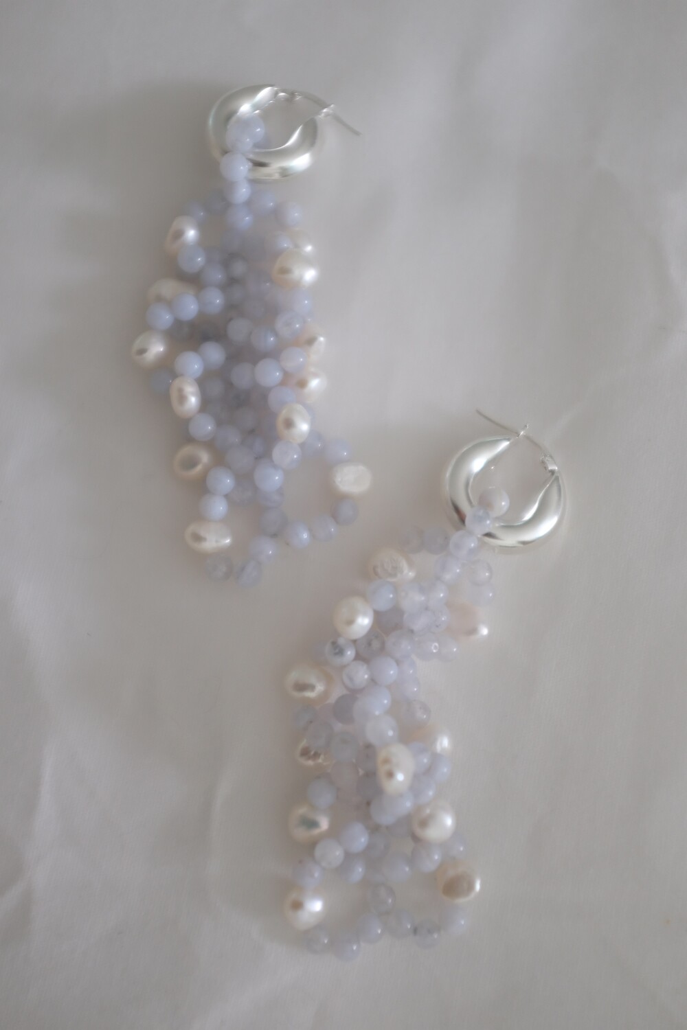 - Linea는 라틴어로 ’선(line)’을 의미하며, 구조 안에서의 움직임과 연결감을 조용하게 드러냄 결을 따라 유연하게 흐르는 구조와 움직임에 따라 찰랑이는 형태감이 특징 - 은은한 물결이 흐르는 듯한 맑고 차분한 하늘빛을 이루고 있는 높은 등급의 블루 레이스 천연석 사용 - Sterling Silver의 볼드한 이어링으로 고급스러움