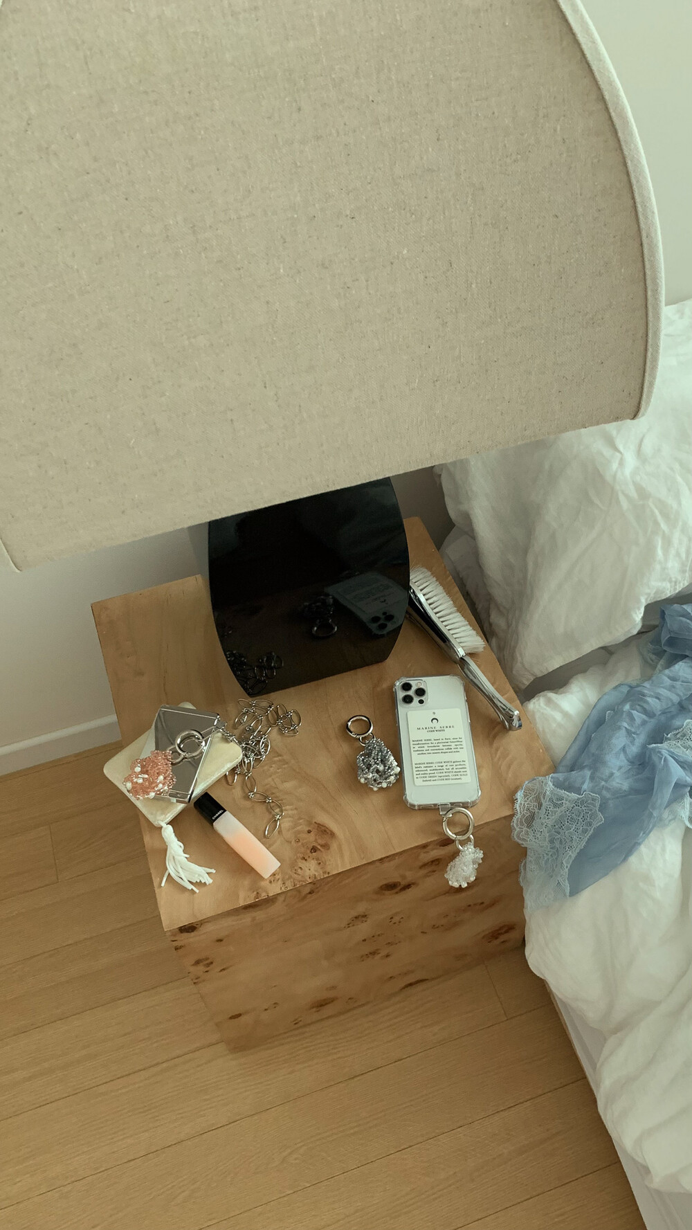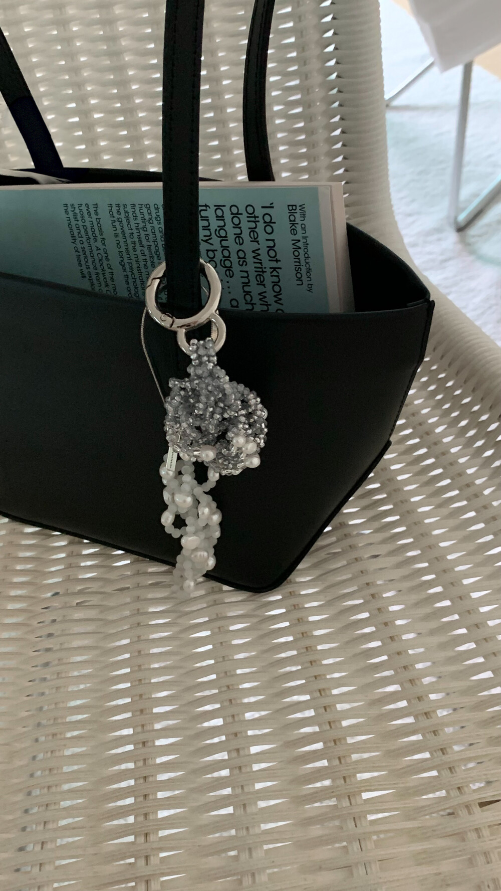 - mhp의 베스트 셀러인 Rope Keyring에서 구조는 그대로, 소재만 바꿔 새롭게 풀어낸 크리스탈 & 담수진주 버전. - 담수진주의 자연스러운 광택과 크리스탈의 선명한 반짝임이 더해져, 전체적으로 한층 더 화려하고 아름답게 디자인 - 빛에 따라 달라지는 깊은 색감과 볼륨감이 매력 - Iron 소재 키링으로 튼튼하며 가벼움 - my heart prescription 로고 각인 - 하나를 완성하는데 1시간의 작업시간 소요 - 소재 : Glass Bead, Crystal, Freshwater pearl, Iron - 길이 : 약 10cm 내외