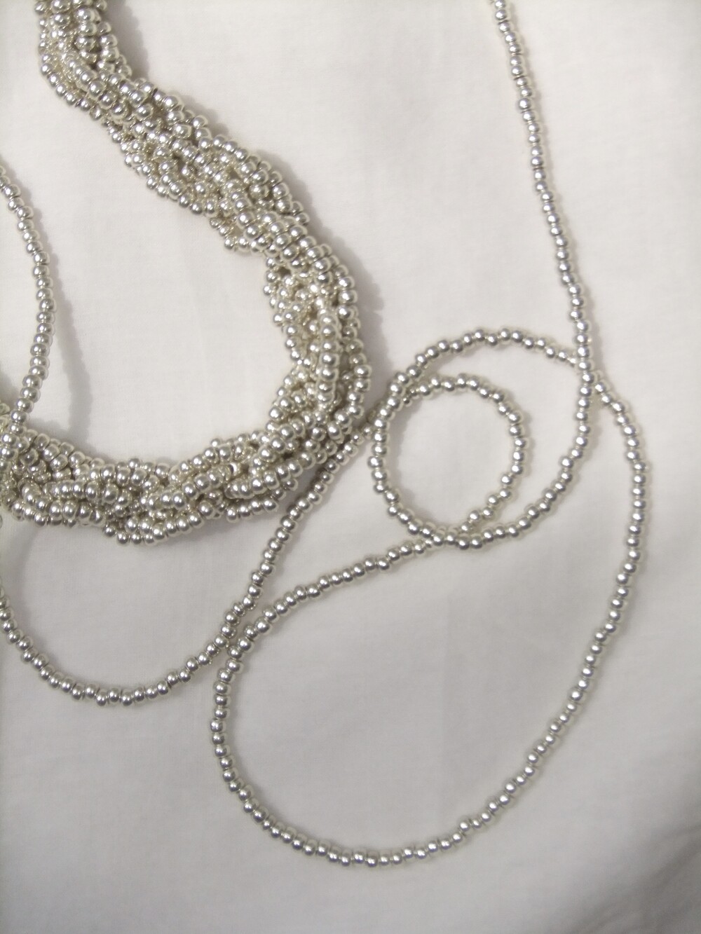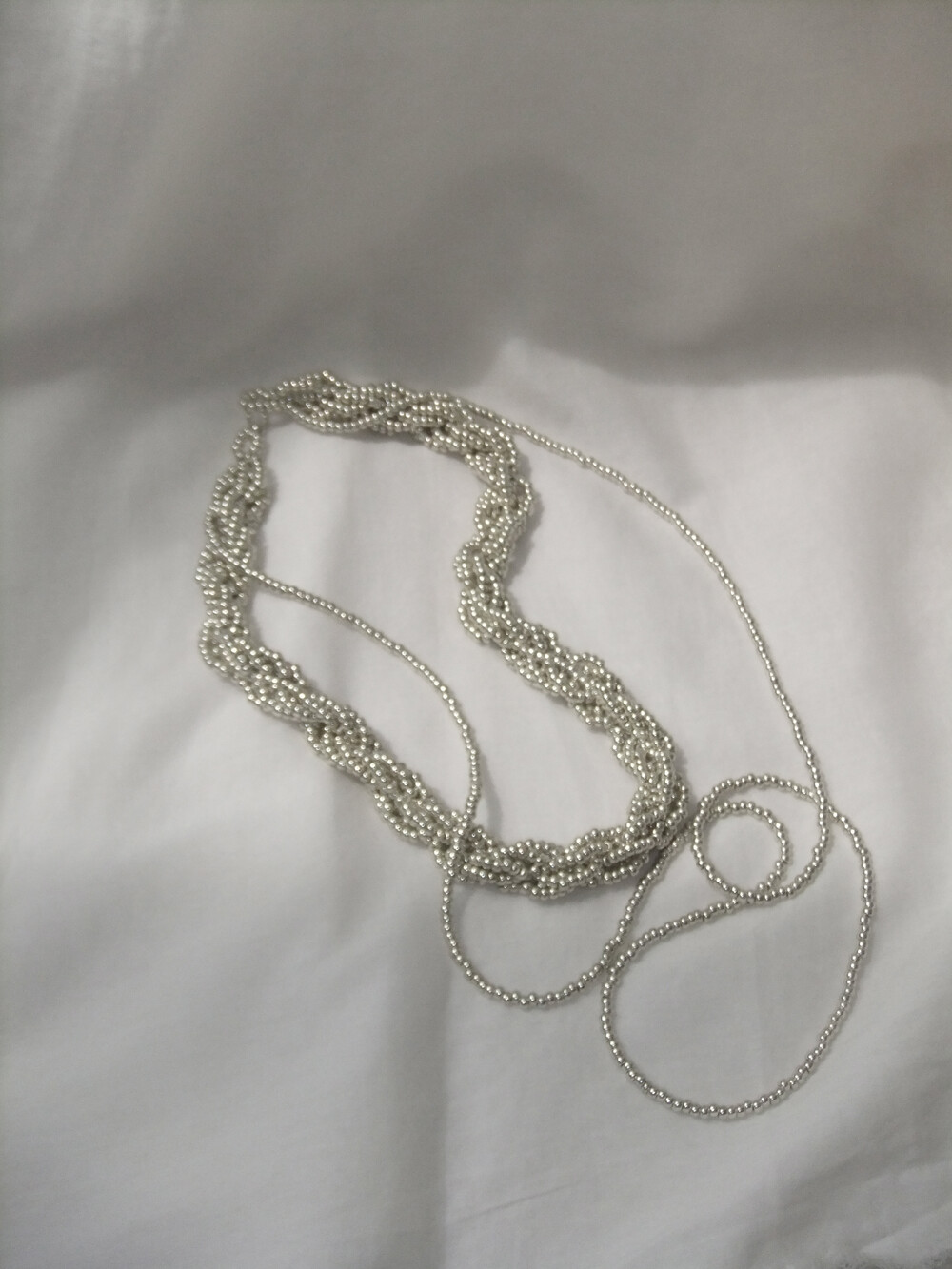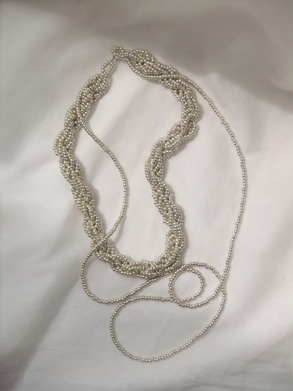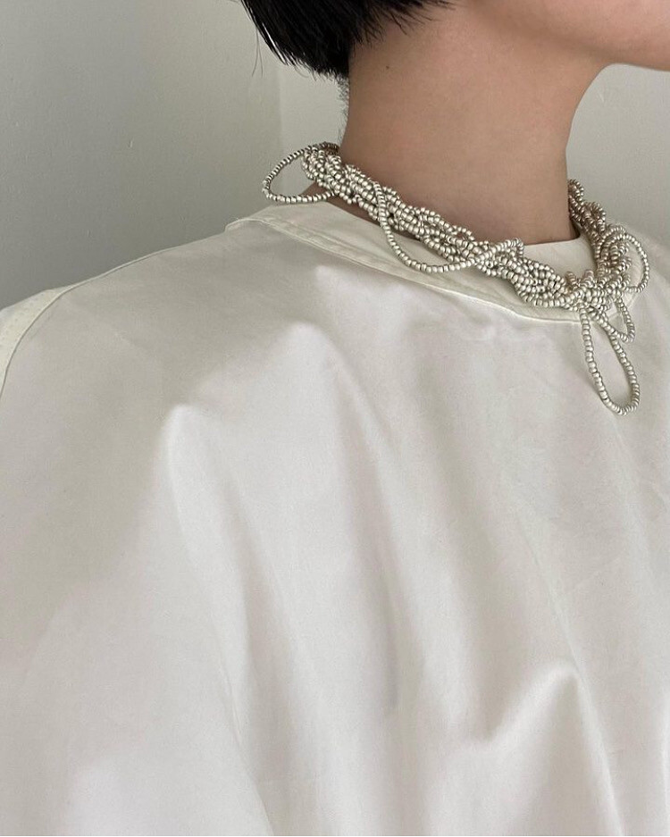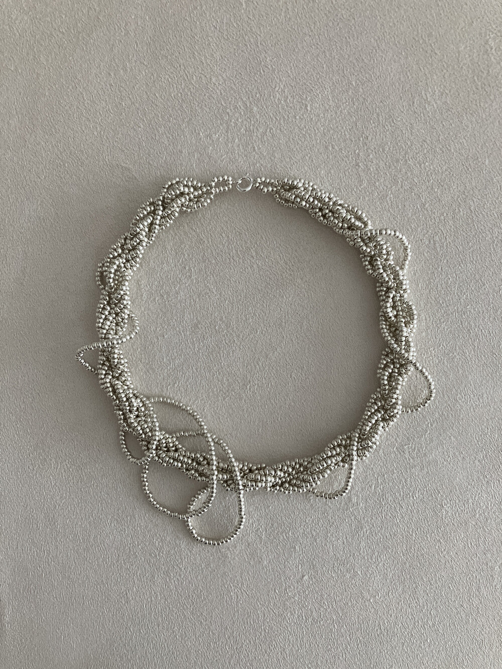 - 2023 S/S ¨Rope Aesthetics¨ - 밧줄의 꼬임에서 영감을 받은 이번 컬렉션은 한알 한알 비즈를 손으로 엮어 모양을 만들어 내는 전통적인 기법으로 제작되었습니다. - 매일을 위한 아름다운 Silver color - 로프 네크리스에 롱 한 길이감의 네크리스를 함께 엮어 원하는 무드로 다양한 연출이 가능 (탈부착 불가능) - Sterling Silver 클래습으로 마감 *메탈컬러를 입힌 비즈 특성상 사용감에 따라 컬러가 조금씩 빠질 수 있습니다. 이 부분은 자연스러운 현상으로 교환 및 반품, 환불 사유가 되지 않습니다.