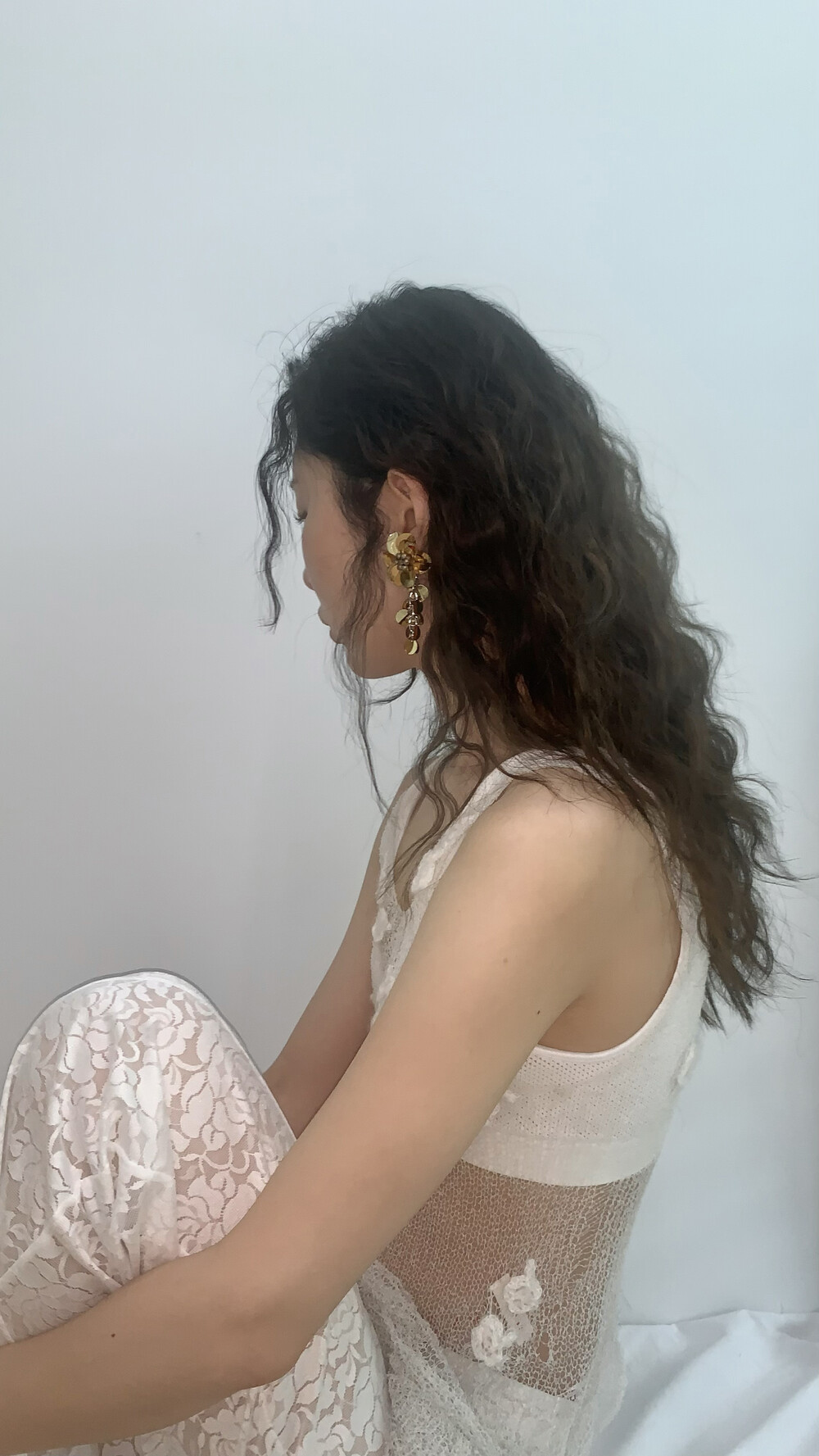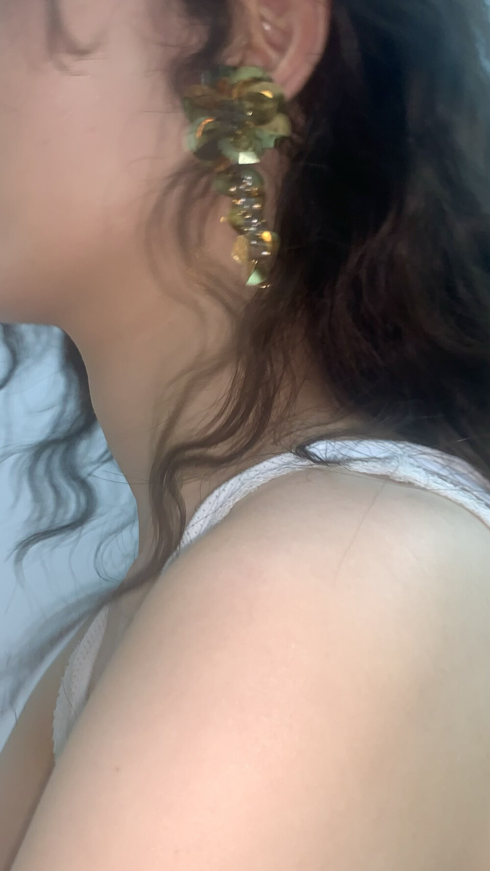 - 스팽글과 크리스탈 비즈를 한땀한땀 엮어낸 플라워 아래로 떨어지는 스팽글 샹들리에가 아름다운 디자인 - Sterling Silver 침 귀걸이 - mhp 로고 각인 *샹들리에 부분 스팽글 O링에 그을린 부분은 납땜 공정 특성상 생기는 부분으로 불량/반품 사유가 되지 않습니다. *뒷면 팰트는 크기와 컬러가 입고시기마다 변경될 수 있으며, 접착제가 비칠 수 있습니다. 이 부분은 불량/반품 사유가 되지 않습니다. *공정 특성상 스팽글에 미세한 스크레치,하얀/검은 점이 있을 수 있으며, 이 부분은 불량/교환 사유가 되지 않습니다.