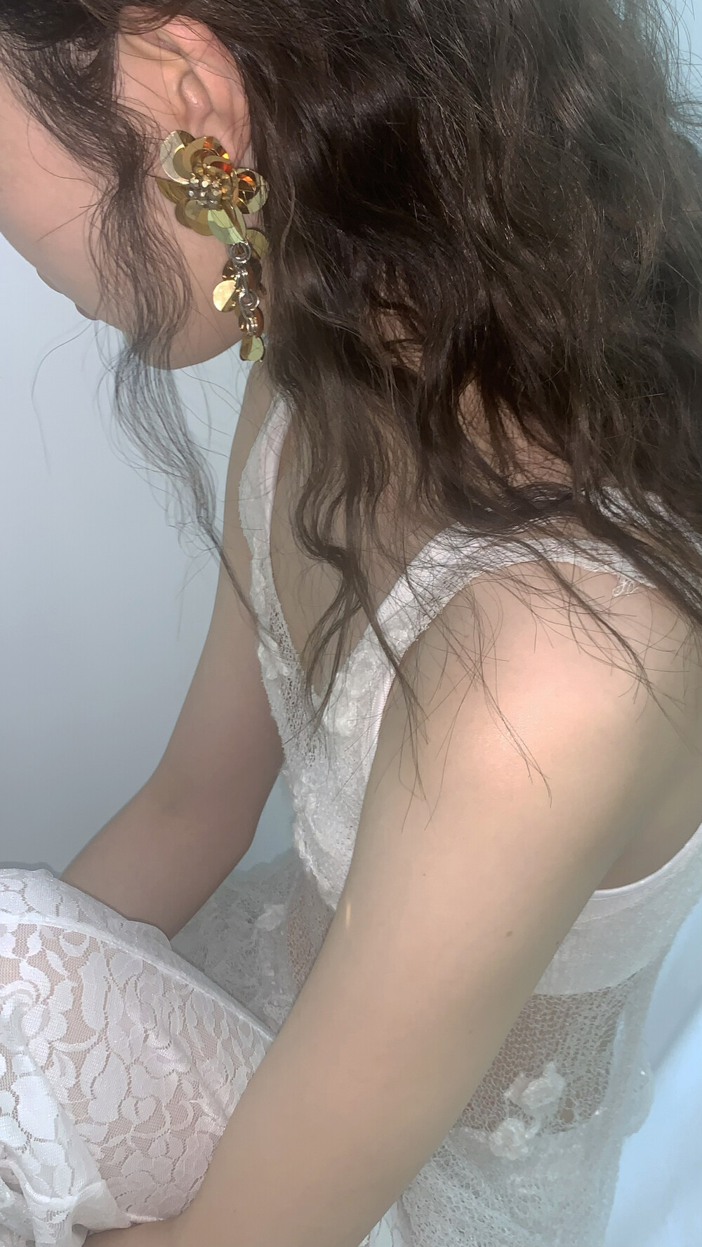 - 소재 : Acrylic Crystal, Spangles, Surgical Steel, Sterling Silver - 플라워 크기 : 약 35mm - 총길이 : 약 75mm *길이는 측정하는 방법에 따라 약간의 차이가 있을 수 있습니다.