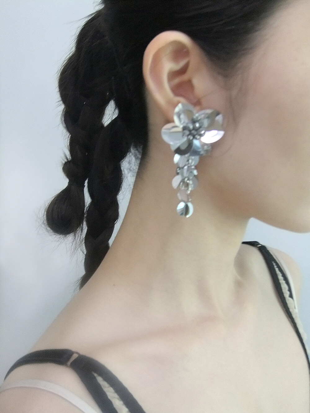- 소재 : Acrylic Crystal, Spangles, Surgical Steel, Sterling Silver - 플라워 크기 : 약 35mm - 총길이 : 약 75mm *길이는 측정하는 방법에 따라 약간의 차이가 있을 수 있습니다.