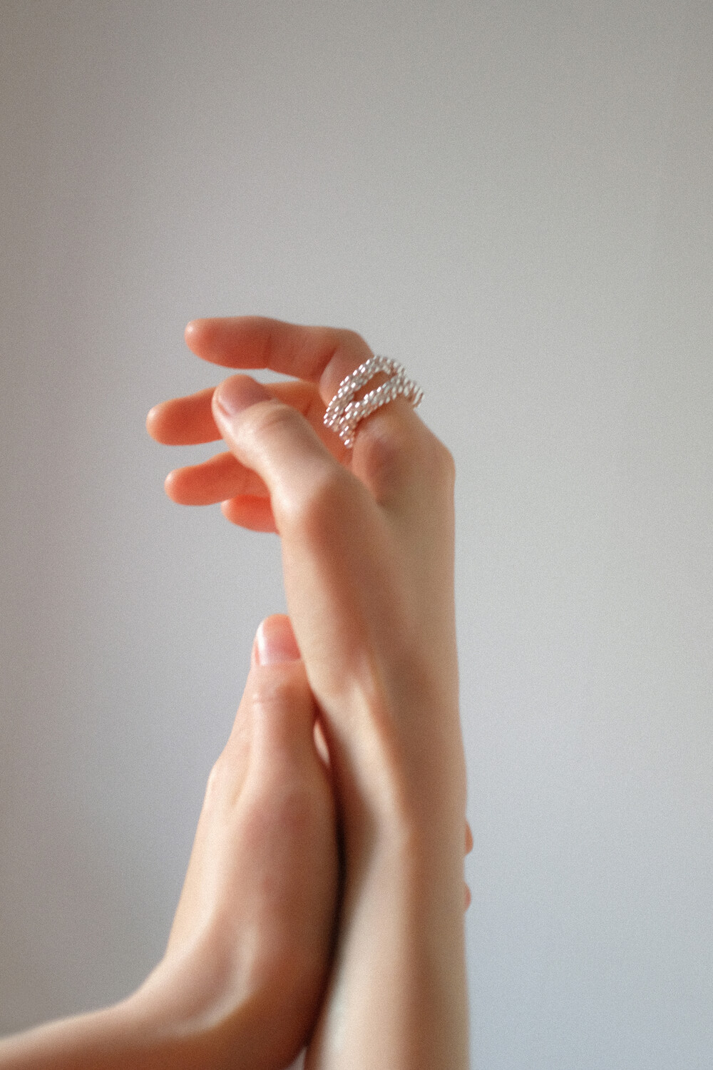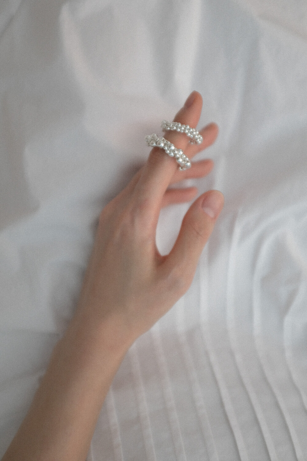 *핸드메이드 특성상 ring의 마감 부분, 실 보여질 수 있으며 이러한 부분은 불량사유가 되지 않습니다. 또한 마감 부분이 조금 더 팽팽하게 느껴지실 수 있습니다. 마감부분을 손바닥쪽으로 돌려 형태를 잡아 착용해 주시면 예쁘게 착용하실 수 있습니다.