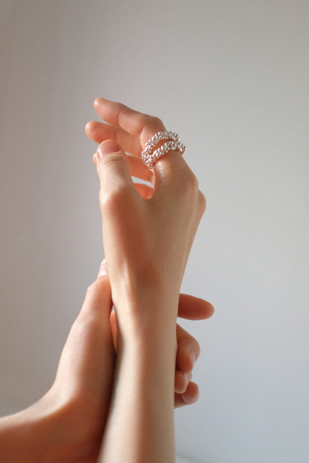 Size Tip : 마디가 굵으신경우, 볼드한반지 디자인 을 한사이즈 업하여 착용하시는 경우에는 한사이즈 큰 사이즈를 추천드립니다. *위 사이즈 팁은 참고사항으로 울퉁불퉁한 내부 표면의 디자인 특징상 개인의 손가락 생김새에 따라 착용감은 다를 수 있습니다. 사이즈 초이스에 도움이 필요하시다면 사이즈 상담을 요청해 주시면, 최대한 도움을 드리고 있습니다.