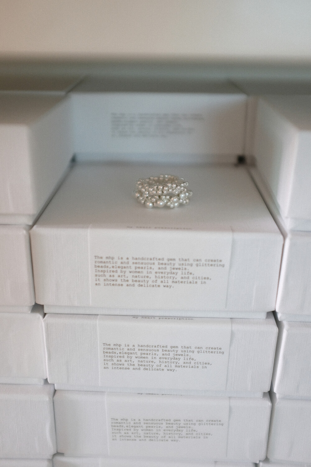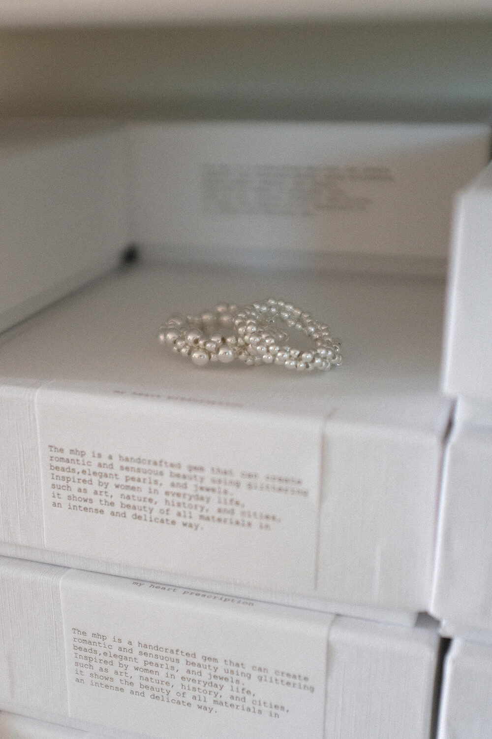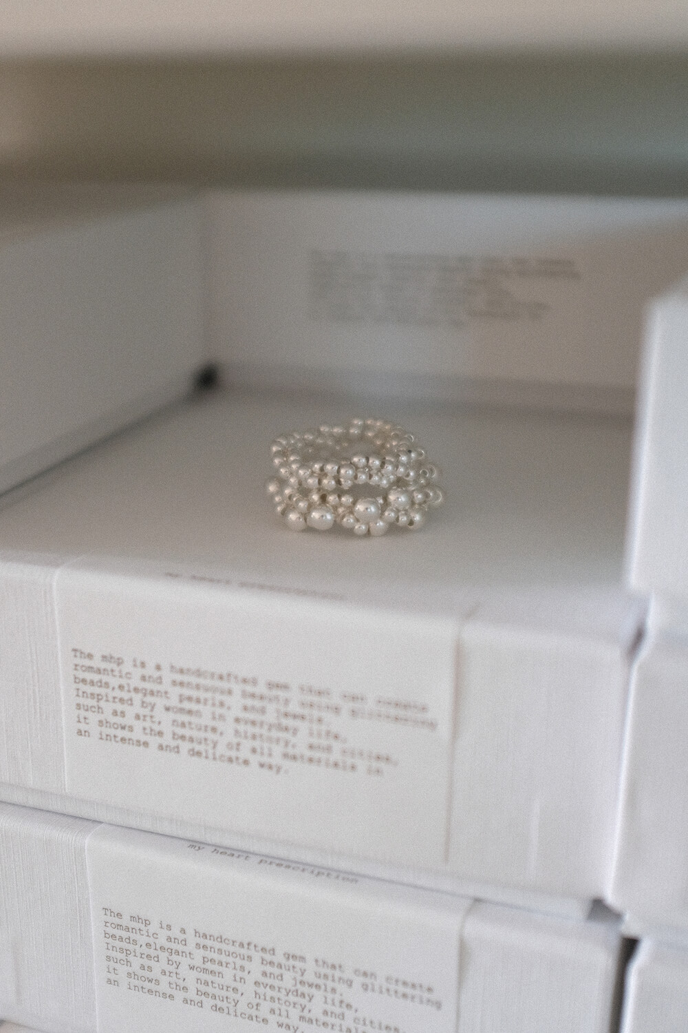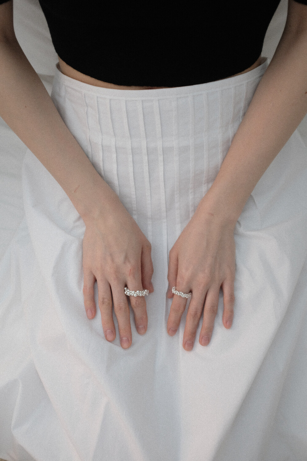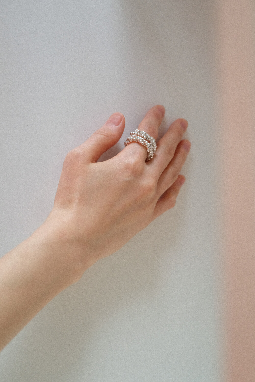 - mhp의 시그니처 디자인인 Object ring의 얇은 버전으로 작은 크기의 원석 비즈를 사용하여 엮어낸 하나의 오브제 형태의 반지 - 소재 : Netural Stone - 두께 : 약 0.5cm