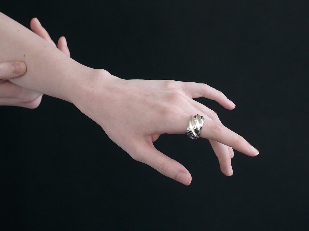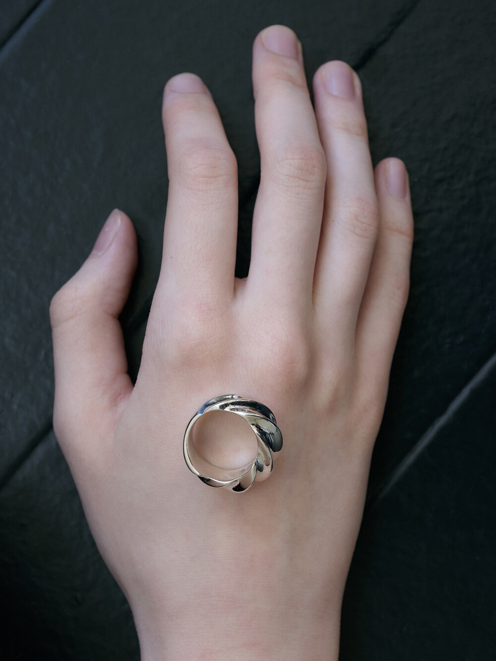 빈티지 장신구의 조각적인 형태에서 영감을 받아 오브제 같은 실루엣으로 풀어낸 Sterling Silver반지입니다. 숙련된 장인의 손으로 형태를 다듬어 조각되었으며, 정교하면서도 유려하게 흐르는 라인이 특징입니다.