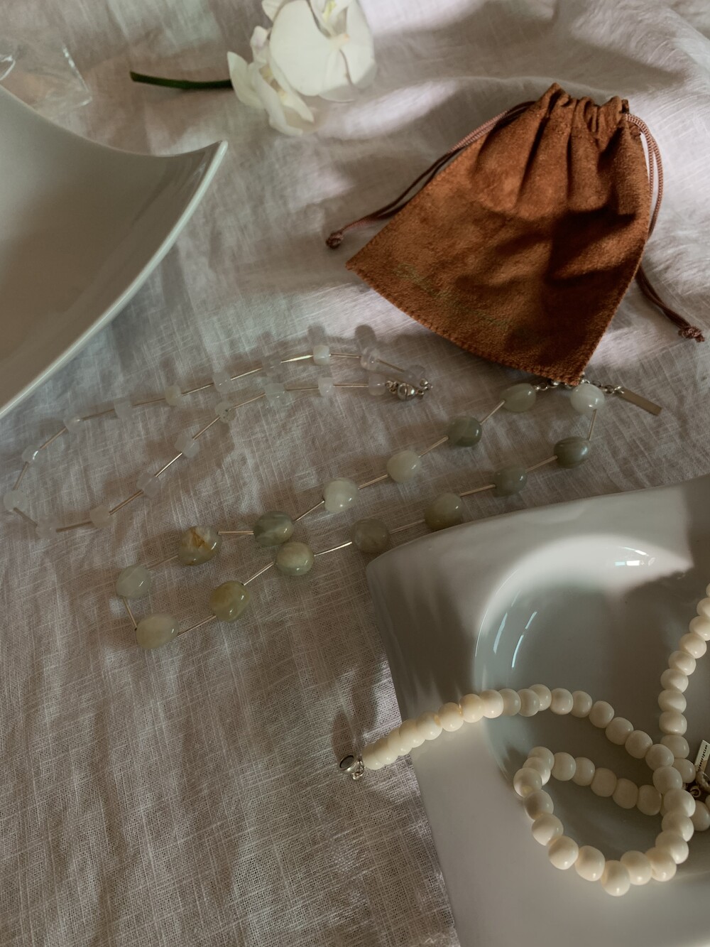 천연석은 각기 다른 색감과 결, 질감을 가진 자연 소재로, 세심한 관리가 필요합니다. [ 보관 ] • 직사광선과 고온·다습한 환경은 피해주세요. • 제품끼리 부딪혀 스크래치가 생기지 않도록 개별 파우치나 케이스에 보관하는 것을 권장드립니다.