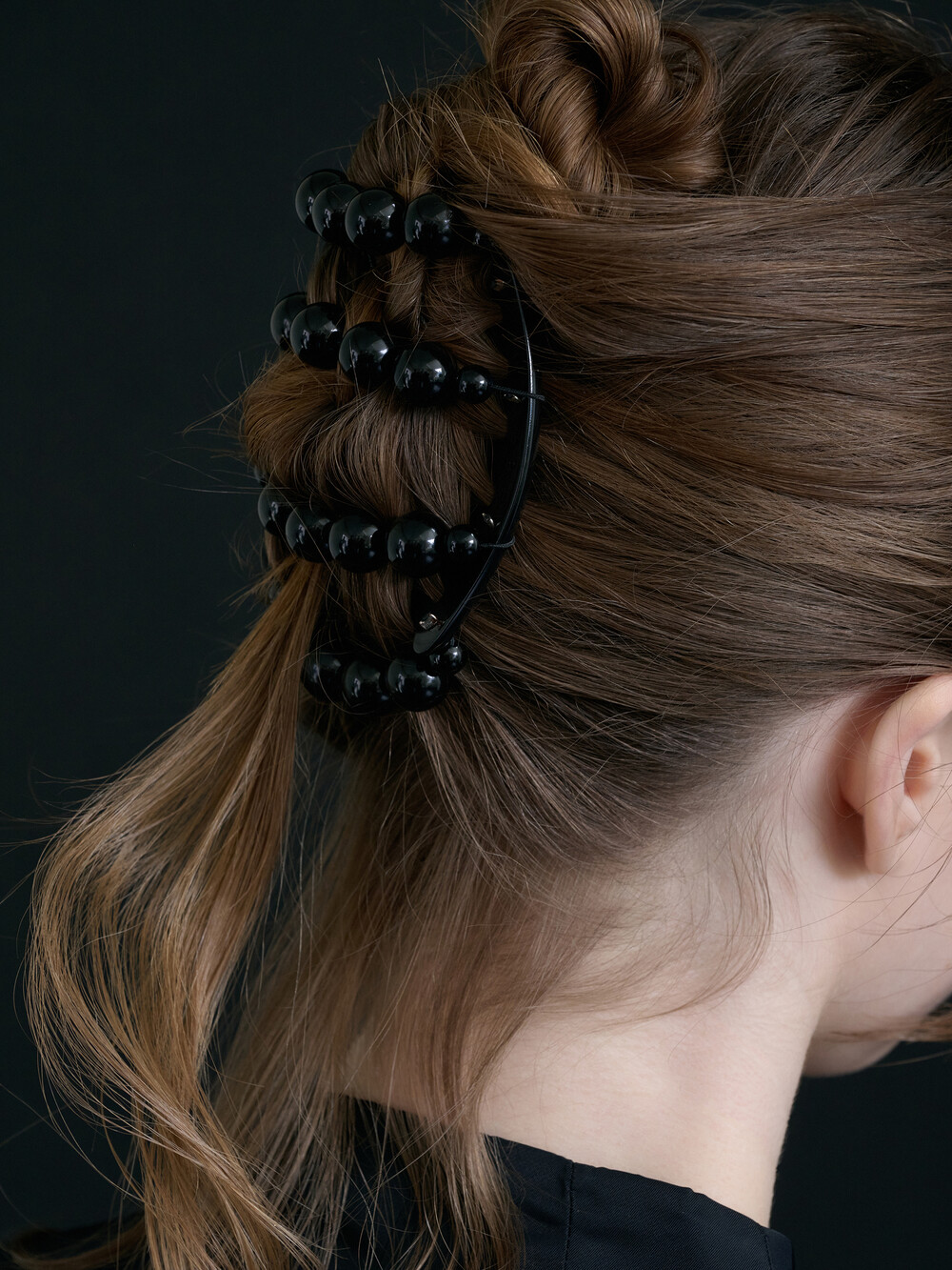 둥근 형태의 오닉스 비즈를 일정한 간격으로 배치하여 헤어 위에 또렷한 리듬감과 단정한 분위기 라인을 만들어냅니다. 차분하고 깊이 있는 블랙 컬러는 광택이 있는 블랙콤과 어우러져 절제된 인상을 만들어 줍니다.