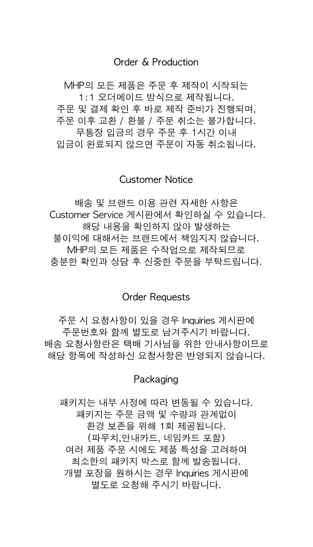 제작 및 교환/환불 안내 (주문 전 필수 확인) - 주문일 기준 주말·공휴일 제외 14일 소요됩니다. 본 제품은 오더메이드/주문제작 상품으로