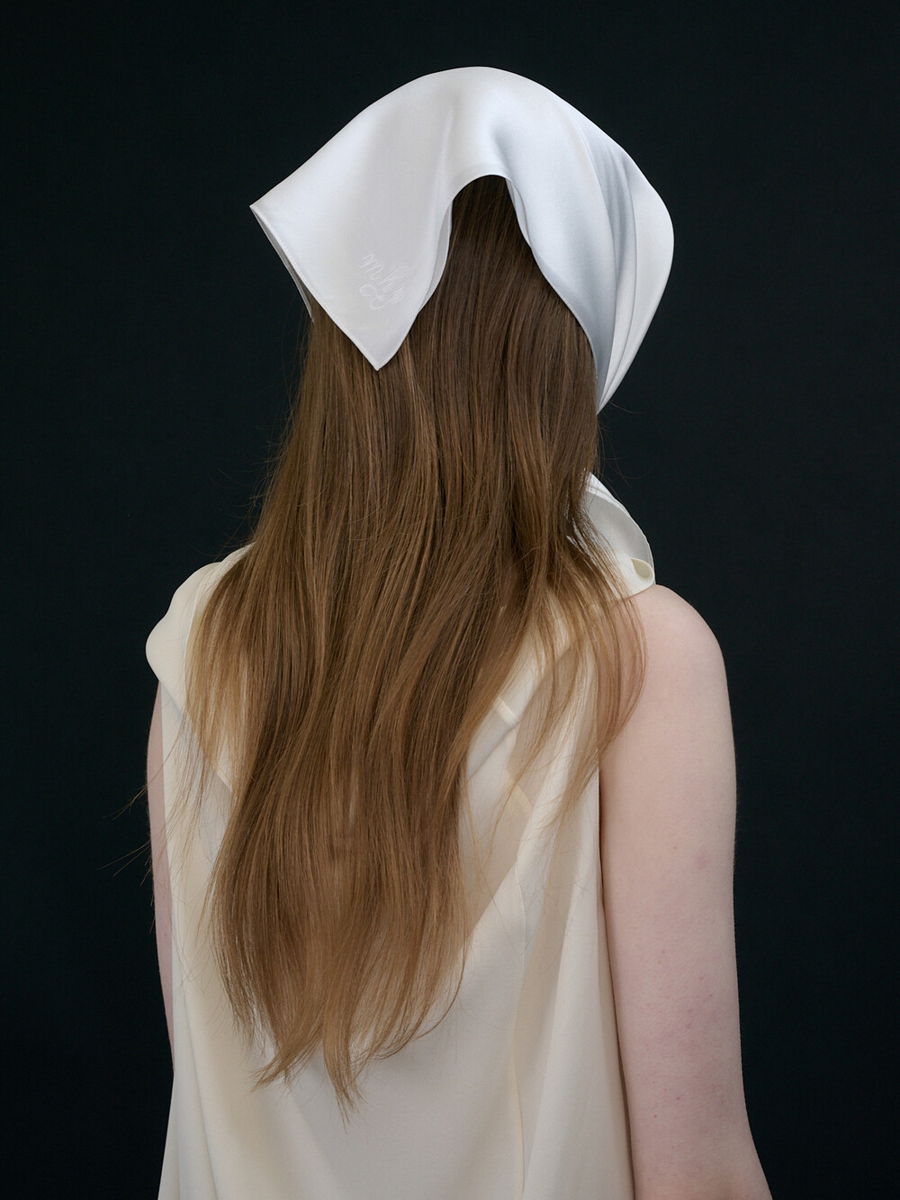 삼각으로 접어 헤어 반다나로 즐기거나, 작게 매듭