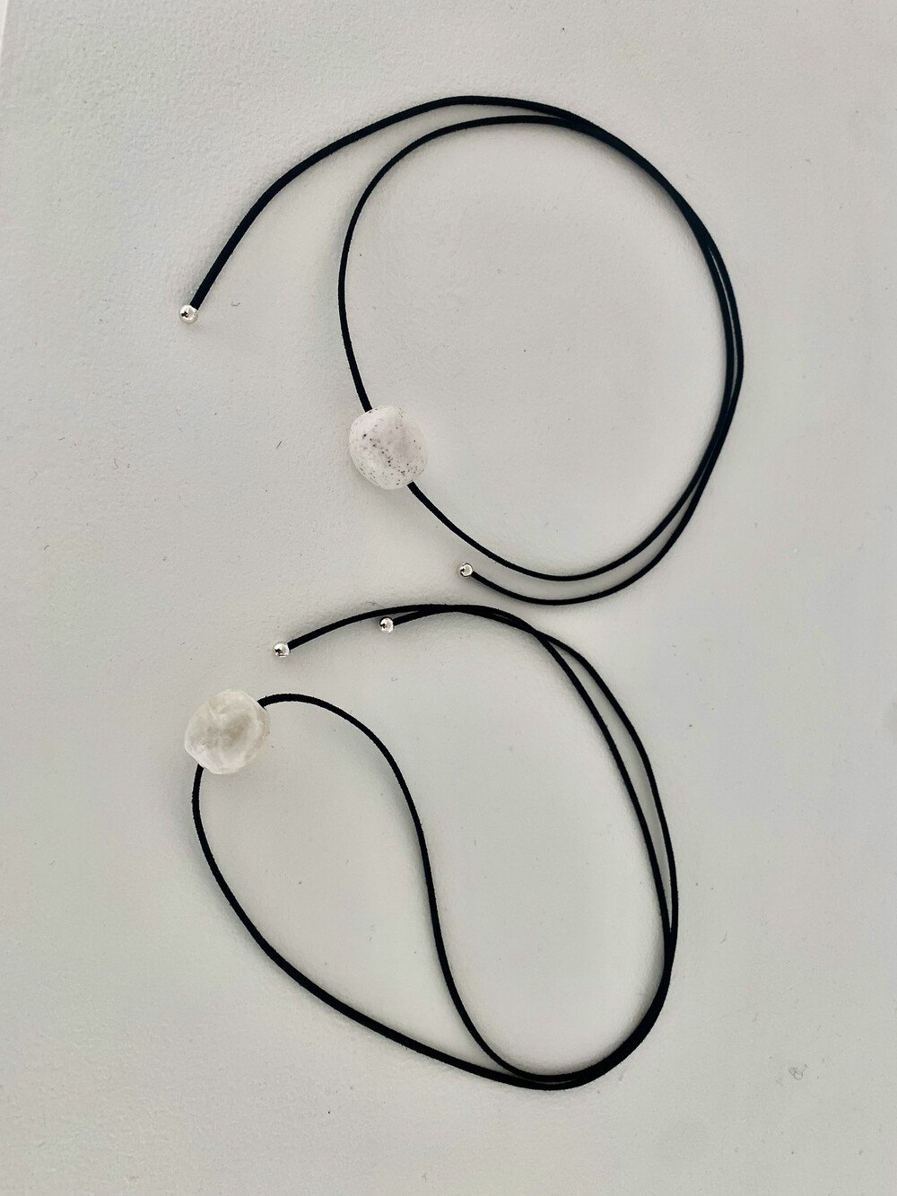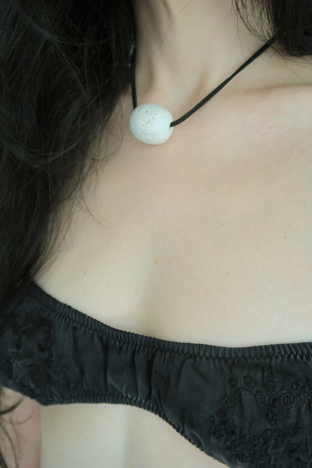 : “Journey 여정" 을 주제로 한 이번 콜라보레이션 컬렉션은 파리 여행 가서 보고 느꼈던 건축적 미감, 예술 조각상, 타일과 벽 마감재 등을 모티브로 풀어낸 컬렉션입니다. 하나로도 존재감 있는 볼드 한 타원형의 세라믹 펜던트가 포인트인 네크리스입니다. 부드러운 스웨이드 끈으로 연결되어 있으며, 매듭으로 자유롭게 길이 조절이 가능합니다.